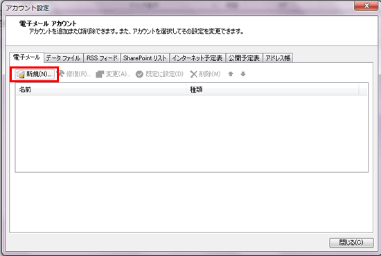 ![]() ※アカウント設定のテストは省略しても問題ありません。 省略する場合は、手順7.にて「[次へ]ボタンをクリックしたら、アカウント設定をテストする(S)」のチェックを外してください。 |