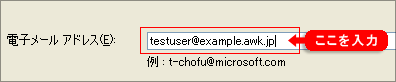 | 使用するメールアドレスを入力してください。メールアドレスは事前に作成しておく必要があります。 |