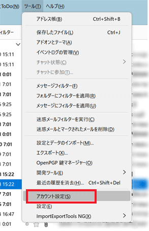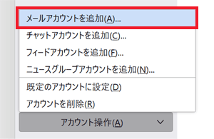 3.「アカウント操作」⇒「メールアカウントを追加」をクリック