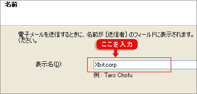 | 使用するメールアドレスの表示名を設定してください。入力された内容はメールを送信した際の宛先に表示されます。 |
