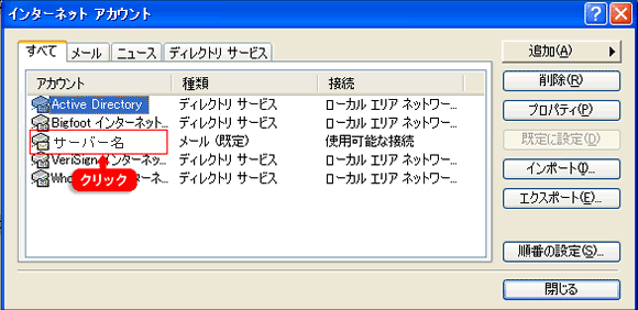 | 1~5の作業でメール受信はできるようになっていますが、メール送信を行うためには最後に認証設定をする必要があります。ここでは「Outlook Express」にSMTP認証の設定を行います。
