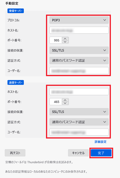 メールアドレス一覧表に記載されている受信サーバー名 |