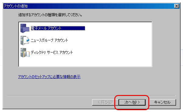 4.[電子メールアカウント]を選択し[次へ]をクリック