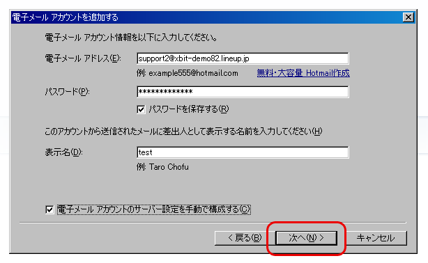 | 電子メールアカウントのサーバー設定を手動で構成する |