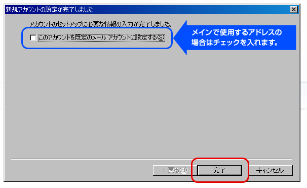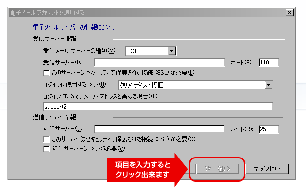 | ■送受信共に「このサーバーはセキュリティで保護された接続(SSL)が必要」のチェックは入れないで下さい。 |